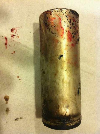 The marks of the canister where it hit Martyr Sayed Hashim near the face.