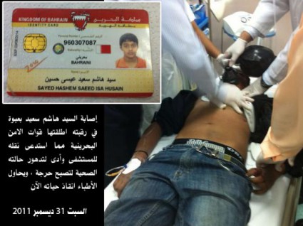 Brave young Sayed Hashim, Murdered, 31 December, 2011 at Peaceful Protest by Bahrain Security Forces