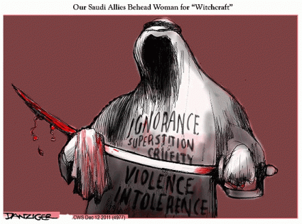 The Saudi Interior Ministry announced on Monday that it had beheaded a woman named Amina bint Abdul Halim bin Salem Nasser for practicing “witchcraft and sorcery.” The London-based al-Hayat newspaper, citing the chief of the religious police who arrested the woman after a report from a female investigator, claims Nasser was tricking people into paying $800 per session to have their illnesses cured. (source)
