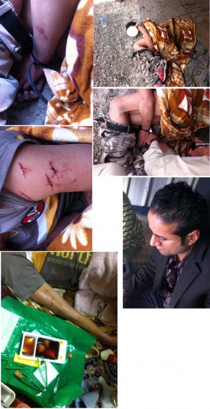 Human Rights Defender Said Yousif Almuhafda, bottom right, lends comfort to victim and documents crime scene.